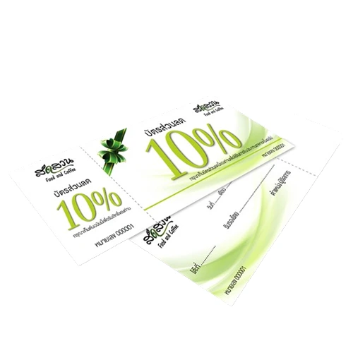 เรารับผลิตคูปองทุกประเภท ทั้งคูปองส่วนลด, คูปองสะสมแต้ม, ตั๋วเข้างาน หรือบัตรกำนัล พร้อมรันเบอร์อัตโนมัติ ปรุฉีก