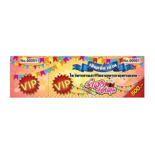 - ตั๋วงานใหญ่ → ใส่ QR/บาร์โค้ด + UV Ink ตรวจจุดเข้าออกรวดเร็ว