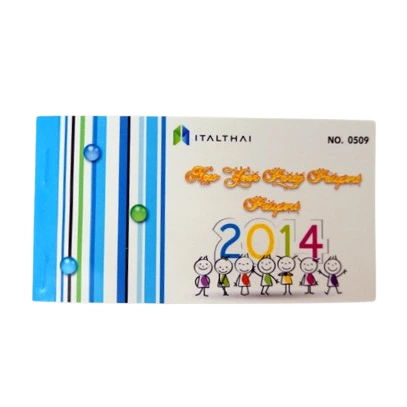 วัสดุ (กระดาษ/พลาสติก) | ปอนด์ 70–120 แกรม, อาร์ตการ์ด 190–300 แกรม, การ์ดขาว 240–310 แกรม | กระดาษแบงค์สี (ขาว/ฟ้า/เหลือง/เขียว/ชมพู), เมทัลไลท์, กระดาษ Texture, PET Film 125–250 แกรม / PVC บาง | คูปองเงินสด/ศูนย์อาหาร, ตั๋วทนทาน |