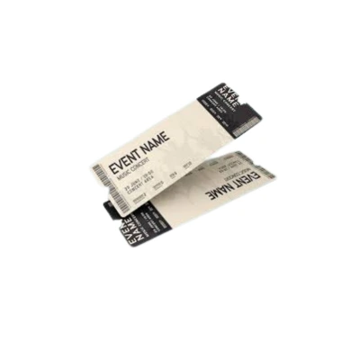 คุณสมบัติกันปลอม | ไมโครเท็กซ์, หมึกเรืองแสง UV, พิมพ์ขาวบนวัสดุเข้ม | ฟอยล์โฮโลแกรม, เมทัลลิก, วัสดุพิเศษ | ตั๋วคอนเสิร์ต/ชิงโชค |