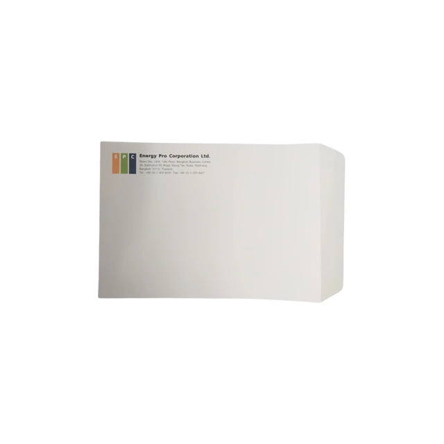 - การพิมพ์ซองจดหมายองค์กรควรเน้นความแม่นยำของสีโลโก้ตามมาตรฐาน CI โดย BPK Printing เลือกใช้กระดาษปอนด์ขาว 100 แกรม หรือกระดาษคราฟท์เนื้อหนาเพื่อป้องกันการมองเห็น