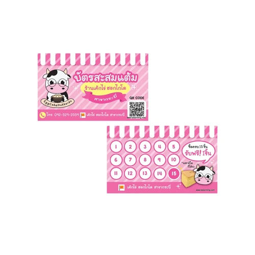 ให้กับลูกค้าที่ซื้อสินค้าหรือใช้บริการอย่างต่อเนื่อง การมีบัตรสะสมแต้มที่ออกแบบอย่างสวยงามและมีคุณภาพจะช่วยกระตุ้นยอดขายและสร้างฐานลูกค้าประจำได้อย่างมีประสิทธิภาพ