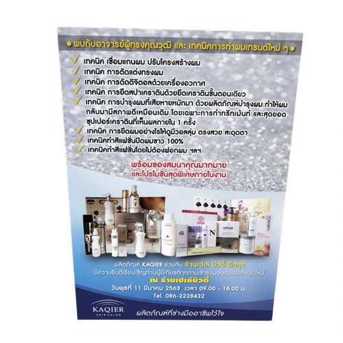 เทคนิคพิเศษ | เคลือบ (ด้าน/เงา, Spot UV), ปั๊มนูน, ปั๊มฟอยล์ (ทอง/เงิน/สีพิเศษ), ไดคัทตามรูปทรง |
