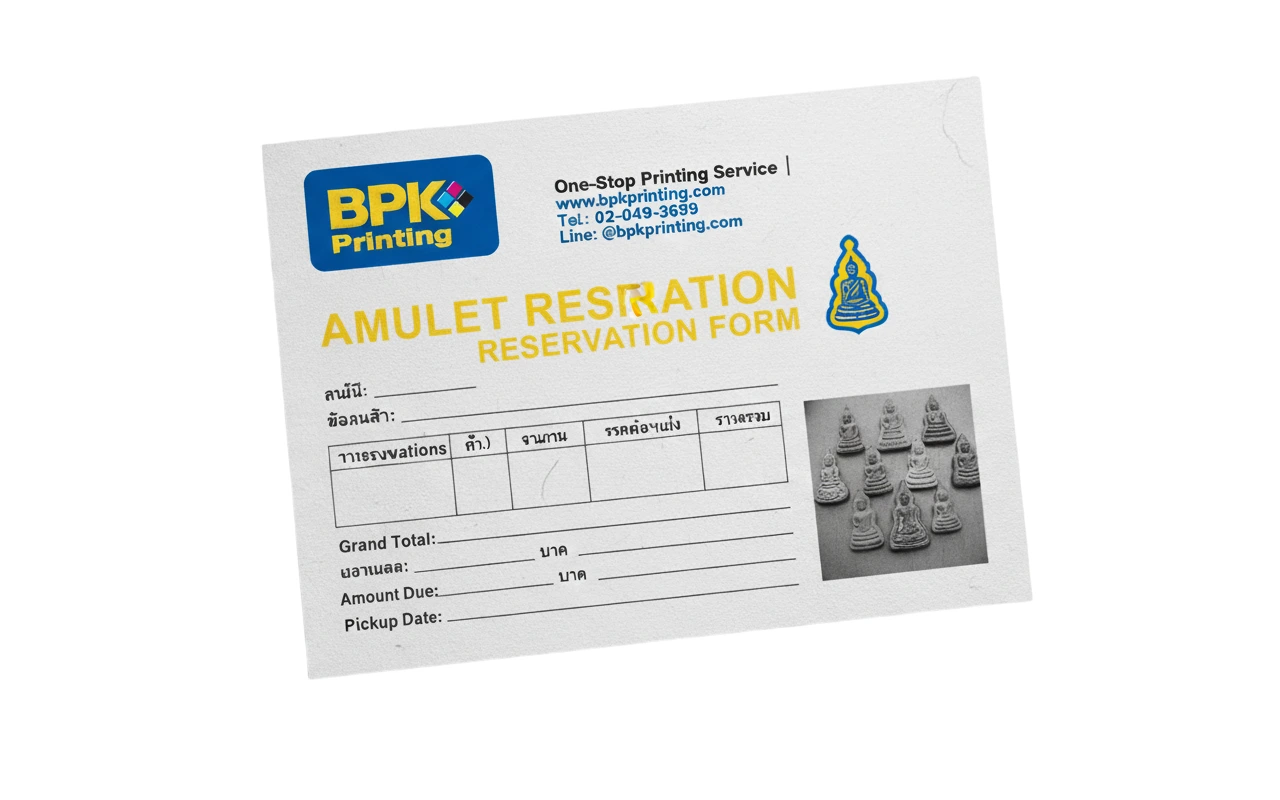 ใบจองพระเครื่องคุณภาพดีจาก BPK Printing ช่วยให้การจองเป็นระบบมากขึ้น มีหลักฐานชัดเจน