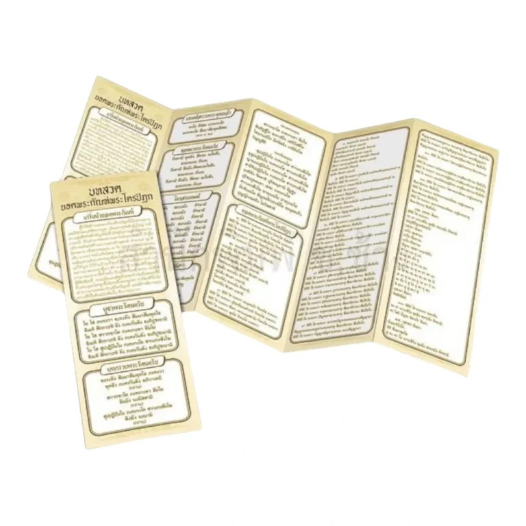 ส่งต่อบุญกุศลอันยิ่งใหญ่ด้วยแผ่นพับสวดมนต์ที่ประณีตและสวยงาม มาตรฐาน ISO 9001 จาก BPK Printing เราใส่ใจตั้งแต่การเลือกบทสวด