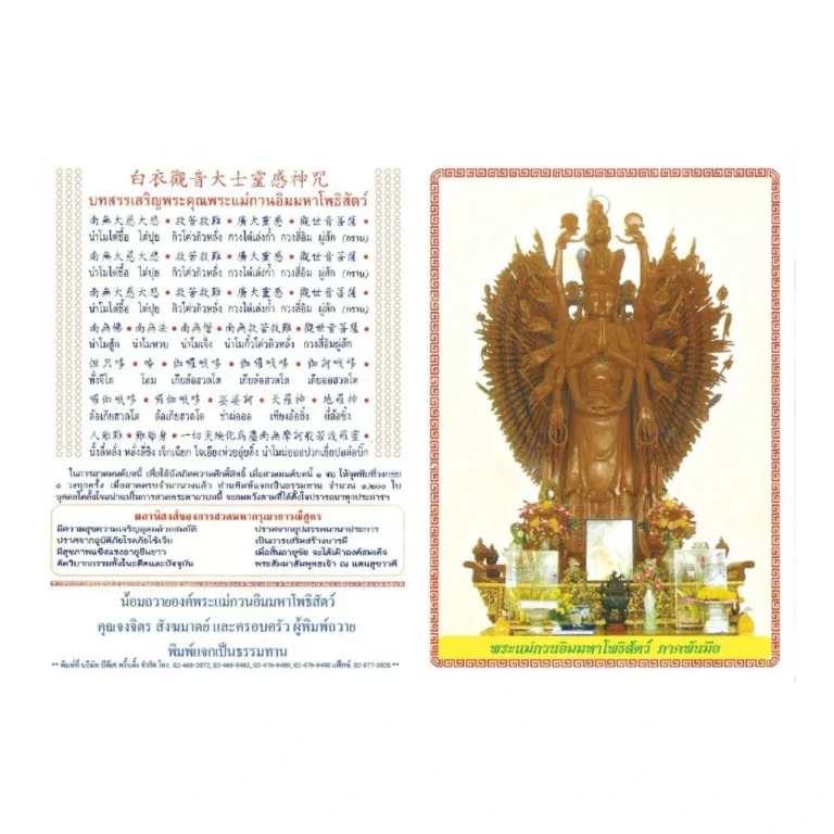 - สร้างบุญกุศลที่ยิ่งใหญ่: การแจกแผ่นพับสวดมนต์เป็นการทำบุญที่ได้อานิสงส์มากมาย ทั้งความเจริญรุ่งเรือง, โชคลาภ, และความสงบสุข
