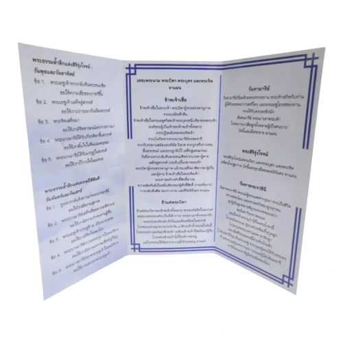 - เรามีทีมงานมืออาชีพที่พร้อมช่วยคุณ ออกแบบแผ่นพับสวดมนต์ ให้สวยงามและตรงตามความต้องการของคุณ