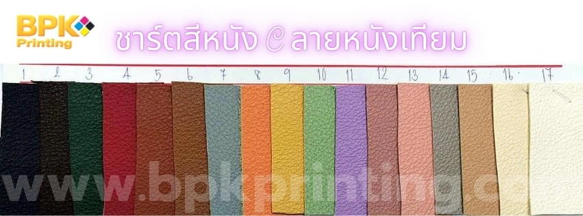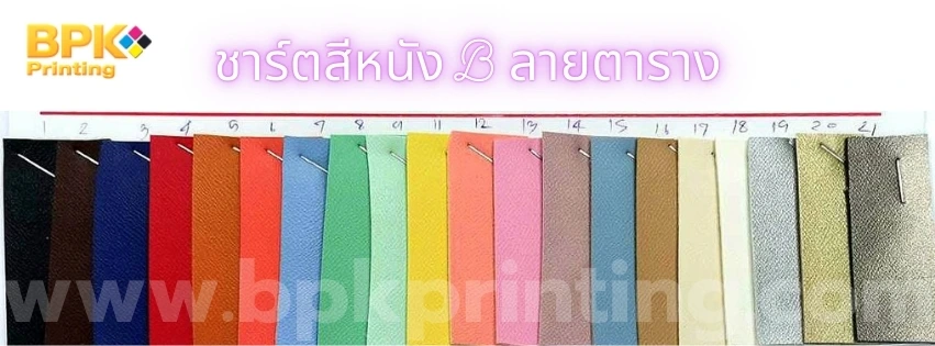 - เลือกสีปกหนัง โดยระบุ ชาร์ตที่เท่าไร เบอร์อะไร เช่น B15 (สีชมพู) (ในแต่ละชาร์ตสีอาจจะมีลายหนังไม่เหมือนกัน)
