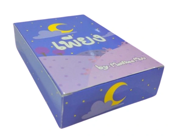 - กล่องระบุขนาดไพ่ชัด (เช่น 70×120 มม.)