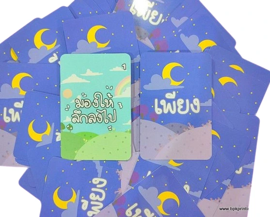 - เลือกกระดาษ 360–420 แกรม + เคลือบกันรอย หากสับไพ่บ่อย